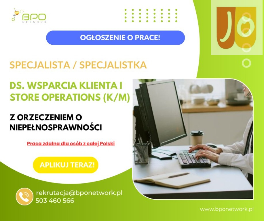 Specjalista ds. Wsparcia Klienta i Store Operations (K/M) z orzeczeniem o niepełnosprawności