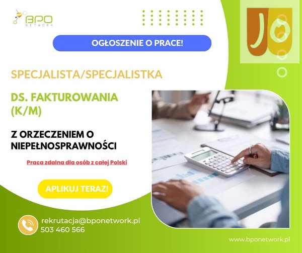Specjalista ds. fakturowania (K/M) z orzeczeniem o niepełnosprawności